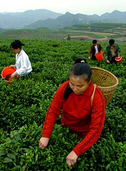 江口縣茶農(nóng)在采摘有機茶葉。攝影/楊俊江