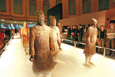 9月11日,中國秦代兵馬俑展覽開展儀式在倫敦大英博物館舉行。從9月13日開始,秦代兵馬俑展覽將正式向公眾開放,集中展出秦始皇兵馬俑、樂俑、仙鶴、野雁,以及秦代青磚、瓦當(dāng)?shù)葋碜郧厥蓟时R俑博物館的120件2000多年前的中國文物。