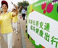 9月16日至22日,首屆中國城市公交周及無車日活動(dòng)在國內(nèi)108個(gè)城市同時(shí)舉行。活動(dòng)期間,各城市人民政府領(lǐng)導(dǎo)將帶頭參與;城市至少實(shí)施一項(xiàng)長效措施,鼓勵(lì)市民采取綠色交通方式出行;在活動(dòng)前后以及活動(dòng)期間,城市要對(duì)有關(guān)的各項(xiàng)環(huán)境指標(biāo)和交通技術(shù)指標(biāo)進(jìn)行監(jiān)測(cè)。