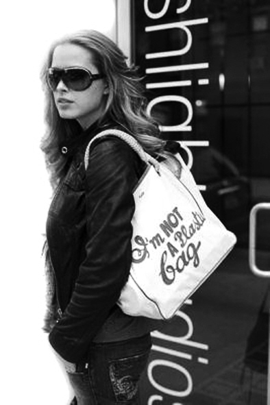 bag.(我不是塑料袋)”,在倫敦上市當(dāng)天就被搶購一空。7月6日,該款包在我國臺灣發(fā)售時,竟然引發(fā)了因強(qiáng)烈推擠導(dǎo)致的受傷事件。據(jù)說為了以防更多擠傷事故的出現(xiàn),這款包取消了在中國內(nèi)地的限量發(fā)售。這只風(fēng)靡整季、把環(huán)保風(fēng)刮遍全球的帆布包,就是來自倫敦的著名手袋品牌AnyaHindmarch的杰作。 奢華的皮草、層出不窮的電子產(chǎn)品……時尚似乎一直與環(huán)保有著天生的距離。時尚人士對于皮草的狂熱,對于羊絨的鐘愛,對于山珍海味的貪婪,都是讓很多環(huán)保人士為之抗議和保持高度警惕的。但“我不是塑料袋”似乎改變了一切。