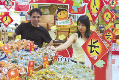 “我們把月餅放在最醒目的位置銷售,可依然少人問津!毖巯,距離中秋節(jié)還有不到10天的時間,北京月餅銷售市場的戰(zhàn)爭也進入了白熱化階段。9月16日,《市場報》記者走訪華聯(lián)、華堂、家樂福等多家商場和超市,發(fā)現今年月餅的銷售情況非但不火爆,而且并不樂觀。 記者首先來到華堂商場十里堡店,發(fā)現正門口的區(qū)域已經被擺放得整整齊齊、包裝精致的月餅禮盒所占據。大三元、宮頤府、稻香村、華美、仿膳、廣州酒家……