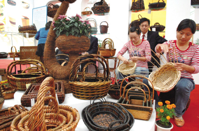 9月25日,“2007中國安徽名優(yōu)農(nóng)產(chǎn)品交易會(huì)”在合肥開幕。圖為兩名技工在現(xiàn)場(chǎng)展示皖西北“柳編”工藝。
