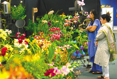 10月13日,在肯尼亞首都內(nèi)羅畢舉行的內(nèi)羅畢蘭花展上,兩名參觀者在觀賞蘭花。此次展會為期五天,展出數(shù)百個品種的蘭花。