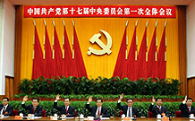 中國共產(chǎn)黨第十七屆中央委員會(huì)第一次全體會(huì)議公報(bào) (2007年10月22日中國共產(chǎn)黨第十七屆中央委員會(huì)第一次全體會(huì)議通過) 中國共產(chǎn)黨第十七屆中央委員會(huì)第一次全體會(huì)議,于2007年10月22日在北京舉行。 出席會(huì)議的有中央委員204人,候補(bǔ)中央委員l66人。中央紀(jì)律檢查委員會(huì)委員列席會(huì)議。 胡錦濤同志主持會(huì)議并作了重要講話。[詳情] |