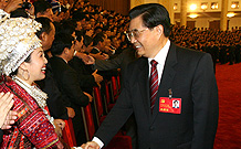 中共中央總書記、國家主席、中央軍委主席胡錦濤22日晚在京西賓館親切會(huì)見了解放軍和武警部隊(duì)出席黨的十七大全體代表。 郭伯雄、曹剛川、徐才厚參加會(huì)見。 參加會(huì)見的還有楊白冰、張萬年、遲浩田、趙南起和梁光烈、陳炳德、李繼耐、廖錫龍、常萬全、喬清晨、靖志遠(yuǎn)、吳勝利、許其亮等。[詳情] |