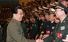 | 胡錦濤會(huì)見解放軍和武警部隊(duì)出席黨的十七大全體代表 |
