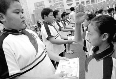 河南省實驗小學外國語分校高年級同學把用過的課本送給弟弟妹妹們。 | 黨的十七大再次明確要求發(fā)展循環(huán)經(jīng)濟,并提出了建設(shè)生態(tài)文明的新目標。然而,“目前我國有在校中小學生2億多人,以每個學生一年兩學期用15冊課本計算,每年要用30多億冊課本,消費紙張達55萬噸之多,需要砍伐1100多萬棵大樹!比珖䥇f(xié)常委朱永新算過這樣一筆賬。循環(huán)使用教科書既有利于節(jié)約,又有利于環(huán)保,國外也有很多可借鑒的成功經(jīng)驗,有識者呼吁多年,為什么推廣不了?究竟難在哪里? 作為北京四中即將畢業(yè)的高三學生,近日筆者無意中對自己使用過的教科書做了一點統(tǒng)計:從小學到高中畢業(yè)的12年共24個學期當中,所使用的課本大約216本,共需人民幣約1622.71元。如果將所學過的課本重疊地堆放在一起的話,它的高度恐怕不會低于2米。有數(shù)據(jù)顯示,目前我國已經(jīng)成為世界上紙和紙板第二大消費國。生產(chǎn)一噸文化用紙要消耗生長20至40年的樹木20多棵,用水100噸、電600度、煤1.2噸、化工原料300公斤、同時產(chǎn)生污水300噸。就是說,造紙用紙不僅有能源消耗問題,而且伴生環(huán)境污染。我國原本就是一個森林資源非常匱乏的國家,如果我們再這樣大量地消耗紙張的話,那么不遠的將來我們整片的森林將變成荒山禿嶺。 筆者在網(wǎng)上搜索了教科書循環(huán)使用的有關(guān)資料,發(fā)現(xiàn)教科書循環(huán)使用在國外早已實行了很多年,在我國利在千秋卻起步艱難。
