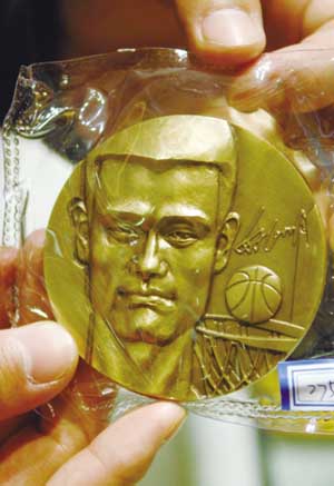 10月23日,“姚明紀(jì)念章”在北京菜百公司開始發(fā)售,這套分別用黃金、白銀和高浮雕鑄銅技術(shù)打造的紀(jì)念章,是國家造幣廠首次鑄造的體壇巨星的經(jīng)典之作。