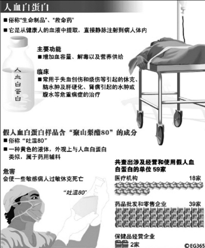 人血白蛋白俗稱“生命制品”、“救命藥”,是從健康人的血液中提取,直接靜脈注射到病人體內(nèi),主要用于癌癥術(shù)后、燒傷病人、休克、顱壓升高、水腫等病癥的臨床急救特殊藥品。 “這種藥臨床上用量很大,一般重癥病人都需要用,正常人體內(nèi)可生成白蛋白,但病人則需要注射白蛋白來提高機體免疫力,有助病人康復(fù)。”吉林省內(nèi)一家大醫(yī)院的院長說。