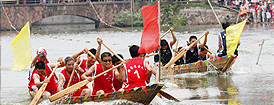 | 6月19日,農(nóng)民代表隊(duì)激烈角逐。附近九個(gè)村莊的農(nóng)民進(jìn)行端午龍船賽。 |