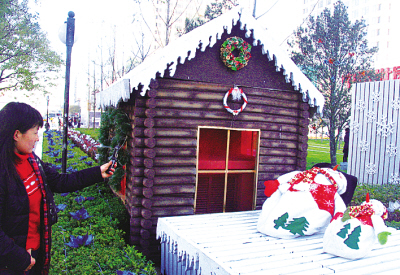 圣誕、新年即將到來,北京街頭節(jié)日氣氛漸濃。圖為搭建在長(zhǎng)安街上的一座“圣誕小屋”,吸引了過往行人拍照、留念。