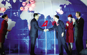 昨天(12日),在新落成的北京首都國際機(jī)場(chǎng)三號(hào)航站樓,國航董事長(zhǎng)李家祥(右)與上航董事長(zhǎng)周赤(左)相互握手祝賀。當(dāng)天,19家星空聯(lián)盟航空公司首席執(zhí)行官搭載國航新引進(jìn)的A330飛機(jī)和上航B767飛機(jī)降落北京首都國際機(jī)場(chǎng),進(jìn)入首都國際機(jī)場(chǎng)三號(hào)航站樓,參加了國航與上航正式加入世界最大航空聯(lián)盟——星空聯(lián)盟的盛大儀式。隨著兩家中國航空公司的加入,星空聯(lián)盟的成員航空公司增加到19家,每天航班數(shù)量達(dá)到17000個(gè),可飛往世界160個(gè)國家的897個(gè)目的地。 | |