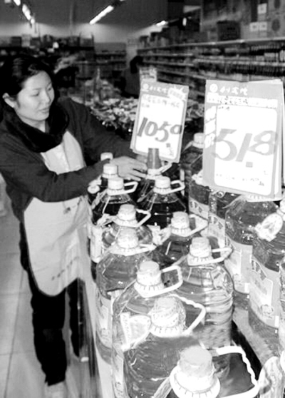 12月8日,家樂(lè)福北京方圓店。 已經(jīng)大半年沒(méi)有買過(guò)食用油的陳先生一次性購(gòu)買了兩桶5.4升裝魯花1級(jí)壓榨花生油。當(dāng)時(shí),該花生油售價(jià)為105.9元。而在數(shù)周前,這個(gè)價(jià)格還是99.9元!皟r(jià)格還會(huì)漲的!奔覙(lè)福油類貨架的促銷員說(shuō)。 花生油僅僅是個(gè)縮影。據(jù)國(guó)家有關(guān)部門價(jià)格監(jiān)測(cè)顯示,在11月份的上半月內(nèi),國(guó)內(nèi)市場(chǎng)食用油價(jià)格呈現(xiàn)全面上漲之勢(shì)。其中,全國(guó)花生油平均零售價(jià)格為每升