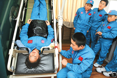 1月2日,第三屆航天體驗營的營員們來到中國航天科研訓練中心,參加心理測試訓練、“太空廚房”體驗、艙內(nèi)航天服裝備操作體驗等活動,體驗太空生活。圖為一名營員體驗血液重新分布適應性訓練。