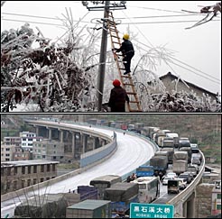 連續(xù)強(qiáng)雨雪天氣對(duì)發(fā)電設(shè)施的冰凍和破壞比較嚴(yán)重,導(dǎo)致電力輸送存在問題。