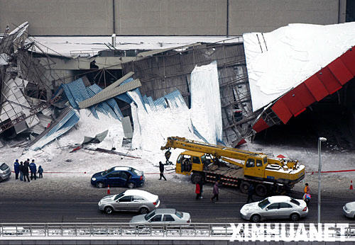 武漢一個(gè)加油站被積雪壓塌(1月27日攝)。 |