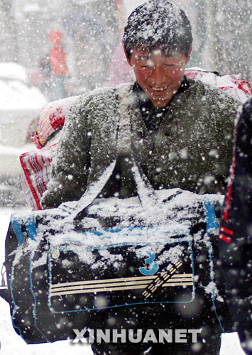 1月26日,乘客冒雪來到巢湖汽車站等車。1月26日,安徽省巢湖市出現(xiàn)暴雪天氣,給人們出行帶來很大不便,道路交通受到影響。巢湖市氣象臺發(fā)布了暴雪和道路結(jié)冰橙色預(yù)警。 新華社發(fā)