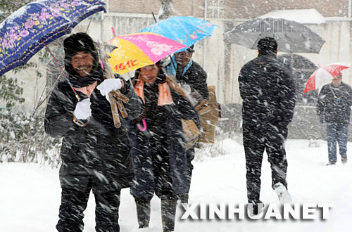 1月26日,幾名合肥市民在大雪中行走。當(dāng)日,安徽江淮流域再次遭受大雪襲擊,持續(xù)十多天的罕見大雪和冰凍天氣仍在繼續(xù)。 新華社記者 陶明 攝