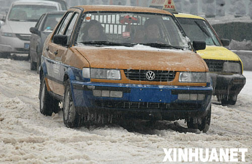 長沙再遭大雪襲擊 汽車行進(jìn)中掛滿冰棱