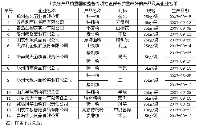 為維護(hù)消費(fèi)者的合法權(quán)益,促進(jìn)小麥粉行業(yè)健康發(fā)展,春節(jié)前夕,國家質(zhì)檢總局組織對部分“年貨”食品進(jìn)行了國家監(jiān)督專項(xiàng)抽查。其中,小麥粉產(chǎn)品共抽查了北京、天津、河南、河北、山東、內(nèi)蒙古、寧夏等7個省、直轄市55家企業(yè)生產(chǎn)的60種產(chǎn)品(不涉及出口產(chǎn)品),產(chǎn)品實(shí)物質(zhì)量抽樣合格率為100%。