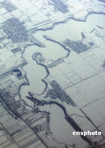| 1月28日,陜西省持續(xù)十幾日罕見的降雪停止,皚皚白雪覆蓋八百里秦川,渭河兩岸風(fēng)光如畫。中新社發(fā) 任晨鳴