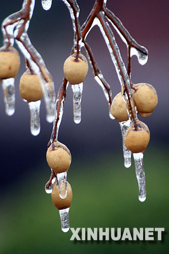 | 1月26日拍攝的雨凇。當(dāng)日,江西省東鄉(xiāng)縣出現(xiàn)多年不遇的雨凇,晶瑩剔透的雨凇美景吸引了眾多市民出門觀看。新華社發(fā)(何江華