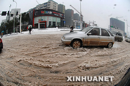 長(zhǎng)沙市區(qū)道路積雪嚴(yán)重(1月28日攝)。