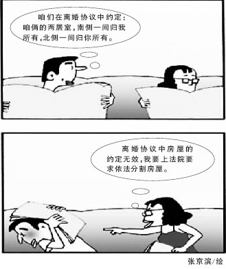 索先生與張女士于2005年3月14日協(xié)議離婚,針對雙方共同所有的登記在張女士名下的一套兩居室房屋,雙方在離婚協(xié)議中約定:南側一間歸索先生所有,北側一間歸張女士所有。2007年1月,張女士起訴到法院,要求確認離婚協(xié)議中有關房屋的約定無效,請求依法分割房屋。 北京一中院審理后認為,物權是權利人依法對特定的物享有直接支配和排他的權利。權利人要實現(xiàn)其對物的直接支配和排他的權利,須以國家公權力的保護為后盾。而國家公權力要實現(xiàn)對物權的保護,必須以確定物的范圍和界域為前提。一套房屋的范圍和界域內(nèi)只能確定一個所有權,國家對不動產(chǎn)實行的統(tǒng)一登記制度中,不允許對同一套房屋登記兩個以上的所有權。因此,不動產(chǎn)雖然可以由兩個以上個人共有,但成套建造的單元樓房不得由兩個以上個人分別所有該套房屋內(nèi)的不同房間。 索先生與張女士的離婚協(xié)議約定:兩人共有的兩居室房屋中南側一間歸索先生所有,北側一間歸張女士所有,違反了一物一權(所有權)的基本原則,該約定無效。張女士起訴要求確認離婚協(xié)議中的該約定無效,符合《物權法》的相關規(guī)定,應予支持。 此案經(jīng)過兩級法院的審理,北京市一中院作出終審判決,判決確認雙方離婚協(xié)議中有關房屋的約定無效,一套兩居室房屋歸張女士所有,張女士給付索先生房屋折價款。