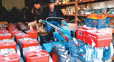 春節(jié)期間,江西省婺源縣農(nóng)機(jī)經(jīng)營(yíng)點(diǎn)生意紅火,農(nóng)民們爭(zhēng)相購(gòu)買農(nóng)機(jī)具,為春耕生產(chǎn)做準(zhǔn)備。圖為2月12日,婺源縣紫陽(yáng)鎮(zhèn)農(nóng)民在選