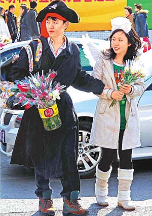 當(dāng)日的北京西單,到處都是年輕人,到處都是浪漫的故事。一對戀人吸引了路人的目光。田園/攝