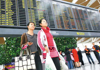 3月26日,上海浦東國際機場2號航站樓和第三跑道正式投入運營,標(biāo)志著歷時近3年建設(shè)的浦東機場擴建工程全面建成啟用。浦東機場擴建工程建成后將使年旅客吞吐量達到6000萬人次,可有效滿足北京奧運會和2010年上海世博會期間航空運輸量高峰的需要。圖為3月26日,浦東國際機場新航站樓迎來首批旅客。