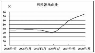 根據(jù)中國互聯(lián)網(wǎng)絡(luò)信息中心(CNNIC)歷年的互聯(lián)網(wǎng)統(tǒng)計(jì)調(diào)查結(jié)果可以看出,目前中國互聯(lián)網(wǎng)的突出應(yīng)用是網(wǎng)上娛樂。這種應(yīng)用的快速發(fā)展可以說是由網(wǎng)民的特征決定的。當(dāng)前互聯(lián)網(wǎng)上比較熱門的娛樂應(yīng)用有網(wǎng)上聊天、網(wǎng)絡(luò)游戲、在線影視、在線音樂等。在CNNIC2008年1月份最新的統(tǒng)計(jì)報(bào)告中,這四項(xiàng)應(yīng)用分別位于網(wǎng)民網(wǎng)絡(luò)應(yīng)用的第2、6、3和1位。我們可以粗略的從網(wǎng)民對這四項(xiàng)應(yīng)用的使用率來反映中國網(wǎng)民的網(wǎng)上娛樂情況。通過自2005年6月以來的連續(xù)6次調(diào)查數(shù)據(jù),我們可以勾勒出中國網(wǎng)民的娛樂曲線。 總體來看,我國網(wǎng)民娛樂應(yīng)用的使用率逐步提升。隨著中國網(wǎng)民基數(shù)的不斷增加,這種提升顯然是迅猛的,在2007年一年中更是扶搖直上。數(shù)據(jù)顯示,這四項(xiàng)應(yīng)用的用戶群中2007年分別增長了12367.5萬人、8808.8萬人、11175.9萬人和13473.2萬人。這顯然是個(gè)不容忽視而且潛力巨大的市場。因此聊天、視頻、音樂等網(wǎng)站的客戶量猛增帶來了點(diǎn)擊量的猛增,更把一些網(wǎng)游公司送進(jìn)了股市。由此一些年輕的視頻公司驚呼中國互聯(lián)網(wǎng)的視頻營銷機(jī)會成熟了,視頻營銷元年到了!這意味著這些視頻公司將不再只是燒錢,而是馬上就可以大把大把的收錢了。 再進(jìn)一步合并這幾條曲線:我們假定這四方面構(gòu)成了100%的網(wǎng)上娛樂,分別給予20%、30%、30%和20%的權(quán)重,這樣就可以得出如圖所示曲線。 我們把圖2中這條經(jīng)過對這四項(xiàng)應(yīng)用進(jìn)行粗略加權(quán)后的曲線稱之為網(wǎng)民娛樂曲線。這條曲線正如2007年中國的股市,極度刺激著相關(guān)互聯(lián)網(wǎng)企業(yè)的興奮神經(jīng)。與圖1中的四條曲線相比,這條娛樂曲線更接近網(wǎng)絡(luò)影視增長曲線。由此可見,中國網(wǎng)民的網(wǎng)絡(luò)影視曲線就近似反映了中國網(wǎng)民的娛樂曲線。 對于這條保持高速增長的娛樂曲線,在2008年,或者更遠(yuǎn)的幾年內(nèi),其發(fā)展走勢會如何? 我們可以從這些應(yīng)用的相關(guān)推進(jìn)元素進(jìn)行考慮分析。首先,中國網(wǎng)民目前處于快速增長期,預(yù)計(jì)到2008年底網(wǎng)民數(shù)將會達(dá)到2.85億人。這個(gè)基數(shù)的增加無疑會帶來更多的娛樂網(wǎng)民。其次,這四項(xiàng)應(yīng)用的功能越來越強(qiáng)大,操作越來越傻瓜化,內(nèi)容也將越來越豐富。這些應(yīng)用給網(wǎng)民帶來的便利、給網(wǎng)民帶來的精神與體驗(yàn)滿足感,都會吸引更多的網(wǎng)民參與進(jìn)來。再次,中國奧運(yùn)年也會對娛樂推動不小。在奧運(yùn)期間,各種媒體會爭先報(bào)道奧運(yùn)信息,不止是競爭在信息量、播報(bào)時(shí)間上,更是在新的報(bào)道平臺和渠道上,在新的媒體技術(shù)上;ヂ(lián)網(wǎng)的及時(shí)特性、聲像圖文并茂等優(yōu)勢已經(jīng)證明是娛樂信息的超強(qiáng)傳播渠道,再加上中國網(wǎng)絡(luò)帶寬的大幅增加、寬帶速度的大幅提高、3G服務(wù)的推出,以及手機(jī)上網(wǎng)、手機(jī)電視等新業(yè)務(wù)的重拳出擊,據(jù)此我們判斷,上述因素都會使中國網(wǎng)民的娛樂曲線繼續(xù)快速增長下去。 |