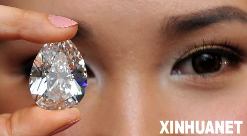 當(dāng)日,香港蘇富比拍賣行展示一顆重達(dá)72.22克拉的白鉆,其形狀呈梨形,凈度為最高的D級,屬絕佳罕見的品種。這顆鉆石將于4月10日在香港會議展覽中心拍賣。