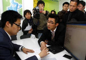 昨天(4月1日),國產(chǎn)3G標準TD-SCDMA在上海和北京、天津等八座城市率先投入試商用。中移動在上海人民路998號和彰武路48號的兩家TD展示廳在9點開門前就已經(jīng)有幾個人在排隊等待,他們都迫切想最先體驗3G的感覺,目前有六款手機可供選擇。