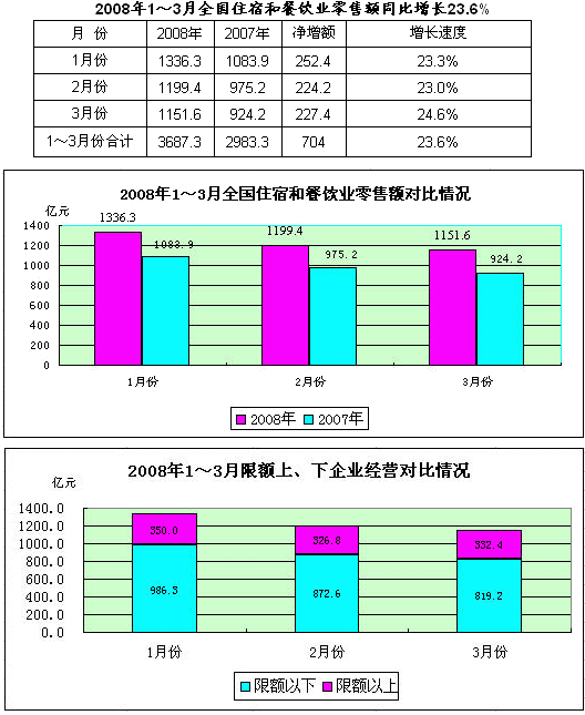 附:2008年1-3月全國(guó)住宿與餐飲業(yè)零售額對(duì)比情況表