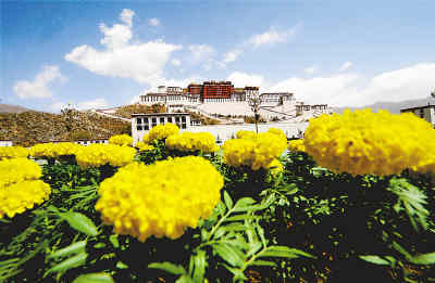 4月26日,西藏自治區(qū)拉薩市布達(dá)拉宮前花團(tuán)錦簇。拉薩市園林部門在布達(dá)拉宮廣場及其周圍擺設(shè)或種植成千上萬株鮮花,迎接北京奧運(yùn)會(huì)倒計(jì)時(shí)100天和“五一”勞動(dòng)節(jié)。