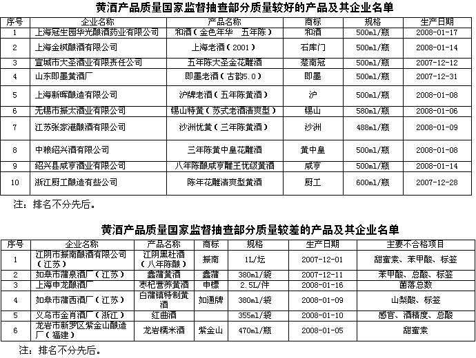2、個(gè)別產(chǎn)品違規(guī)添加甜味劑或防腐劑。強(qiáng)制性國(guó)家標(biāo)準(zhǔn)GB2760-1996《食品添加劑使用衛(wèi)生標(biāo)準(zhǔn)》規(guī)定,黃酒中不得添加甜味劑(糖精鈉、甜蜜素)、防腐劑(苯甲酸、山梨酸)。抽查中有個(gè)別產(chǎn)品檢出甜蜜素、苯甲酸和山梨酸。