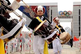 4月27日,北京奧運(yùn)圣火傳遞活動(dòng)在韓國首爾舉行。這是圣火傳遞現(xiàn)場的文藝表演。