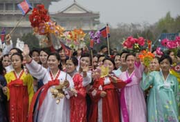 4月28日,朝鮮民眾沿途歡迎奧運(yùn)圣火的到來。當(dāng)日,北京奧運(yùn)會(huì)圣火傳遞活動(dòng)在朝鮮平壤舉行。 |