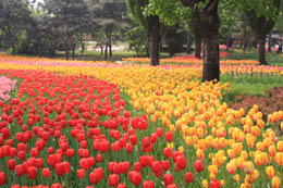 郁金香原產(chǎn)荷蘭,是該國的國花,后引種我國,芳名四溢,早已成為春季賞花的重頭戲。郁金香體態(tài)優(yōu)美,高雅含蓄,亭亭玉立,色澤艷美,在花語中她代表了“愛的表白”,如果你是害羞內(nèi)向的人,不妨邀上心儀的另一半前往觀賞,借機表達(dá)愛意。當(dāng)然,來自國外的朋友也不妨到此一游,感受一下花開異度依舊爛漫的情懷。 花期:4月中旬至5月上旬 景點:北京中山公園 以“奧運序曲——春天的暢想”為主題的中山公園第十三屆郁金香暨春花展覽于4月15日到5月上旬舉辦。展覽期間陸續(xù)展出50多萬株,142個品種,13個類型的郁金香,并通過實物造型、人物雕塑及主題花壇相結(jié)合的布展手法,在園內(nèi)精心布展了“喜慶迎賓”、“歐洲風(fēng)情”、“和諧家園”、“異彩流芳”、“童話森林”、“百花迎春”等6個主題景區(qū)。30余種郁金香新品均是首次在本公園展出。