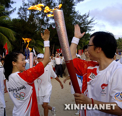當(dāng)日,北京1奧運會圣火傳遞活動在海南三亞舉行。