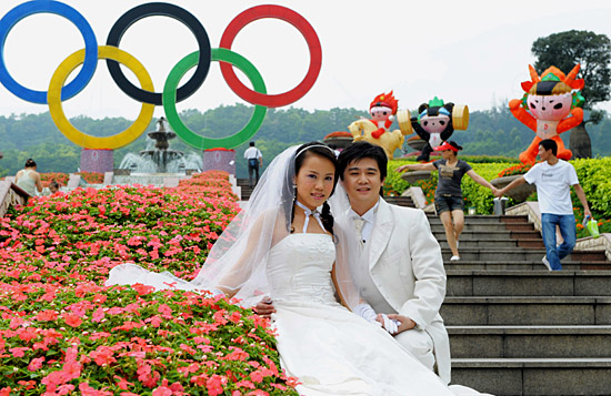 廣州:新人拍攝奧運(yùn)婚紗照