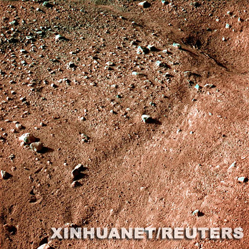 這是5月25日由美國(guó)“鳳凰”號(hào)火星著陸探測(cè)器拍攝的第一批火星北極附近的彩色圖片其中一張。 新華社/路透