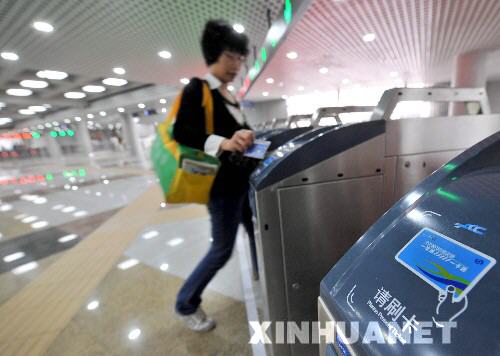 6月9日,一名乘客刷卡進入北京地鐵西直門站。