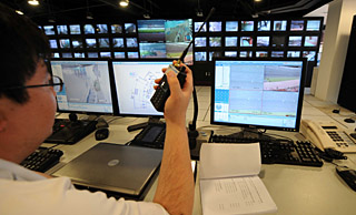 | 工作人員在國(guó)家體育場(chǎng)(“鳥巢”)的安保監(jiān)控室里工作。新華社記者 李文