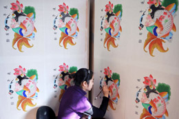 畫(huà)師在天津市西青區(qū)楊柳青鎮(zhèn)“年畫(huà)張作坊”繪制年畫(huà)。本報(bào)記者:王建華