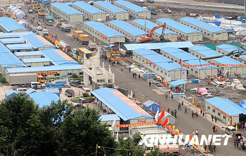6月12日,由四川省成都市紅十字會援建的“幸福家園”一期工程――一萬平米賑災(zāi)安置板房在都江堰建成,首批1400多名受災(zāi)群眾正式入住。“幸福家園”二期五萬平米板房正在緊張建設(shè)中。