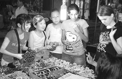 遭受特大洪水“洗禮”的廣西陽朔縣西街,連日來重現(xiàn)游客云集繁華的景象。6月13日,50年一遇的特大洪水使陽朔成了一片澤國,西街成了“水街”,全縣旅游業(yè)受到重創(chuàng)。14日洪水消退后,全縣旅游秩序恢復(fù)正常。圖為中外小朋友在廣西陽朔西街購物。