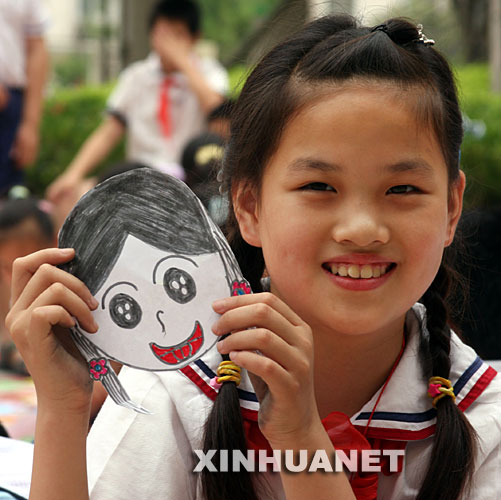6月22日,一名學(xué)生展示自己畫(huà)的“笑臉”。 | |