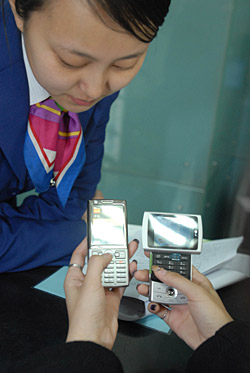 | 奧運(yùn)協(xié)辦城市沈陽(yáng)的市民正在選購(gòu)、試用3G手機(jī)。新華社發(fā)(王齊波